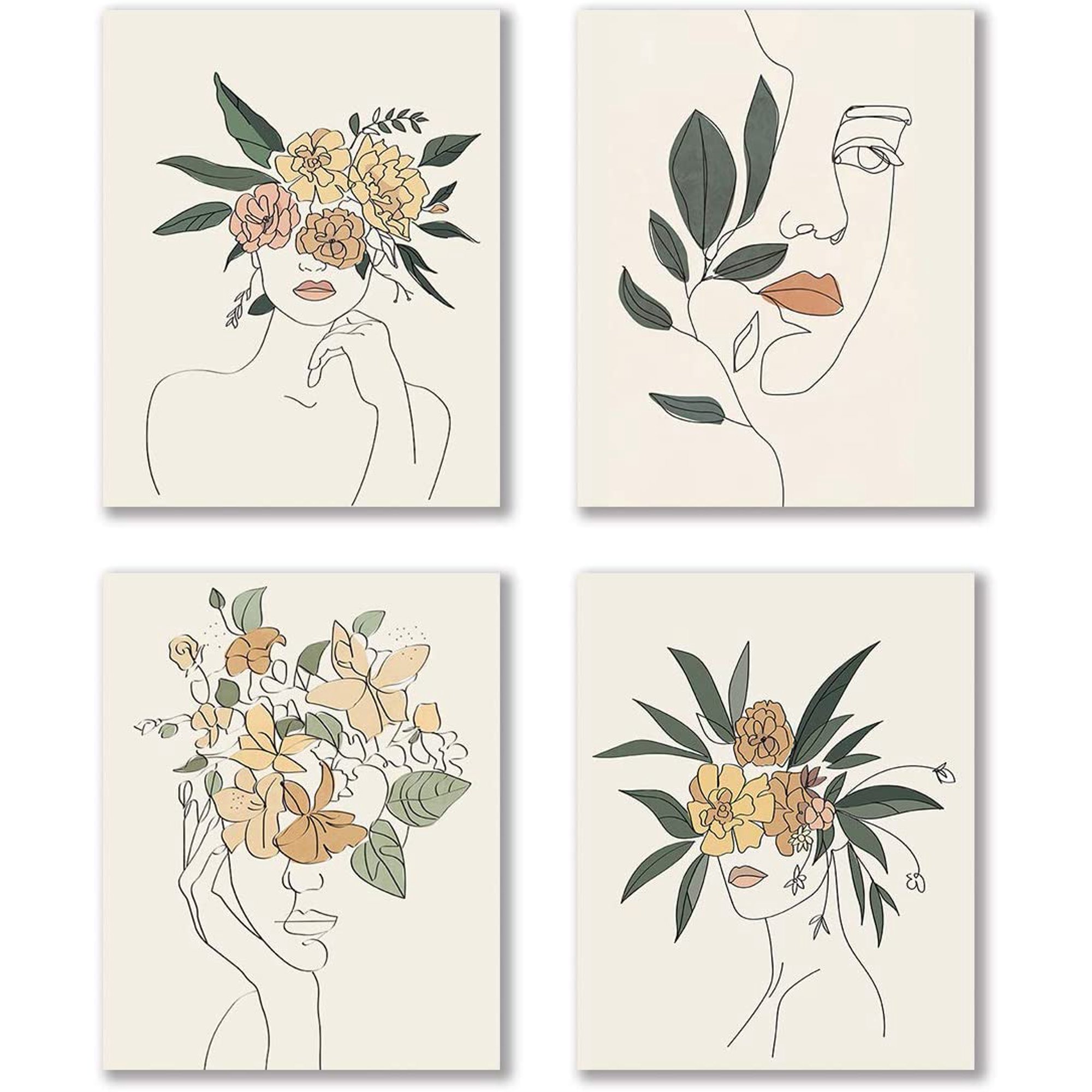 Modern Minimalist Fashion Pop Women Prints Flower Wall Art Painting Set Of 4 8 X10 Canvas Picture Pretty Girl Locker Room Queen Of Woman Art Poster For Spa Bathroom Home Decor Frameless