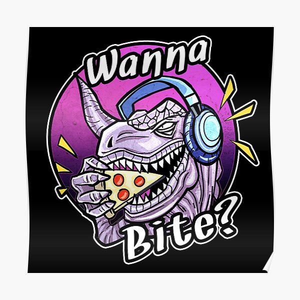 Purple Dinosaur T Rex Eating Slice Of Pizza Wanna Bite Poster For Sale By Dnlribeiro88 Redbubble